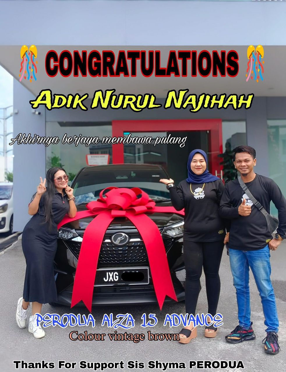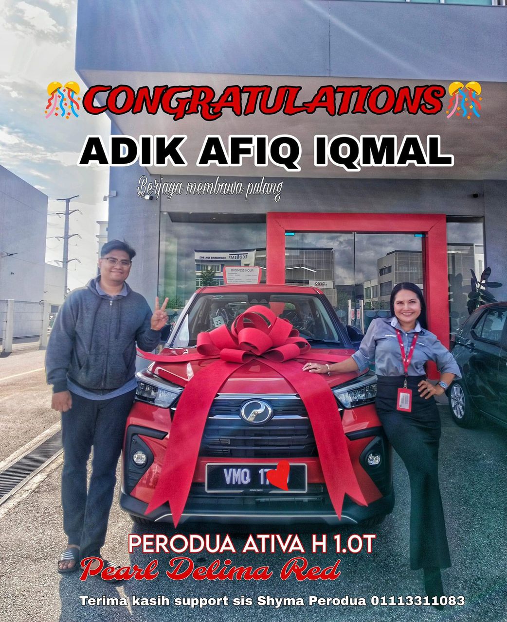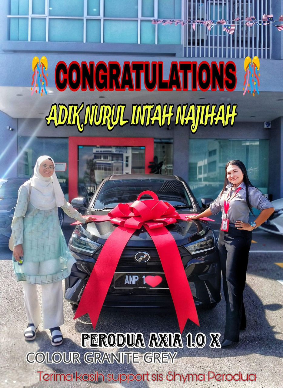 Saya telah membantu dan menguruskan banyak tempahan pelanggan dari Perak, Pulau Pinang dan Kedah serta dari seluruh Malaysia untuk mendapatkan kereta Perodua.